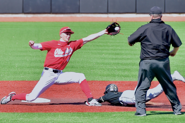 Later in the game, Marcus Ernst took second when the ball trickled away from the catcher by a matter of several feet.