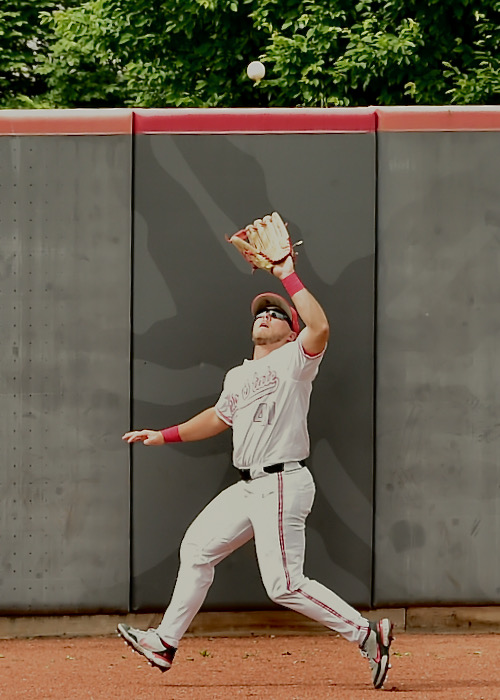 Outfielder Mitchell Okuley catches the last out of the 2021 season for the Buckeyes.