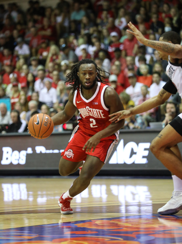 Brice Sensabaugh’s three-pointer at the halftime buzzer handed the Buckeyes a 38-27 margin and Thornton and Key led the second-half getaway to a lead as big as 24 points.