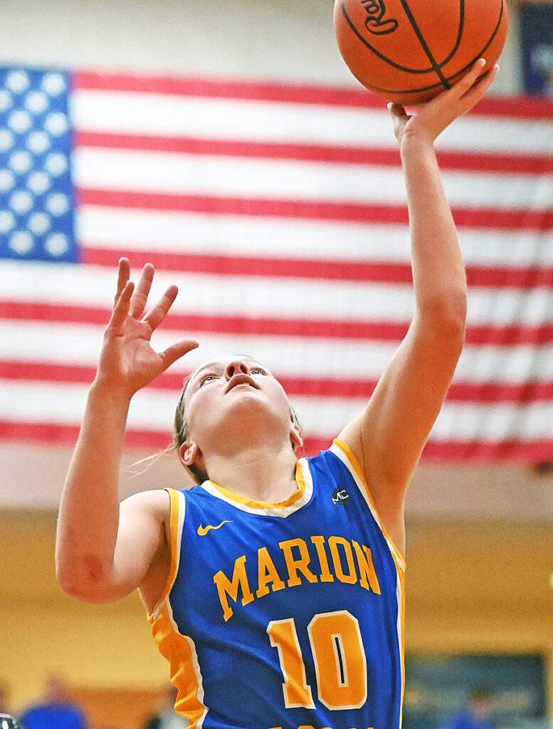 Marion, which had weathered 18 turnovers to that point, promptly threw away five straight possessions, allowing Mississinawa to get back within 35-33 on consecutive hoops from MacKenzea Townsend over the next three minutes.