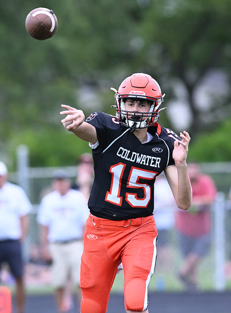 On an opening night with a tragic overtone, Coldwater’s quarterback put his emotions aside long enough to provide winning leadership…and tribute to a fallen friend.