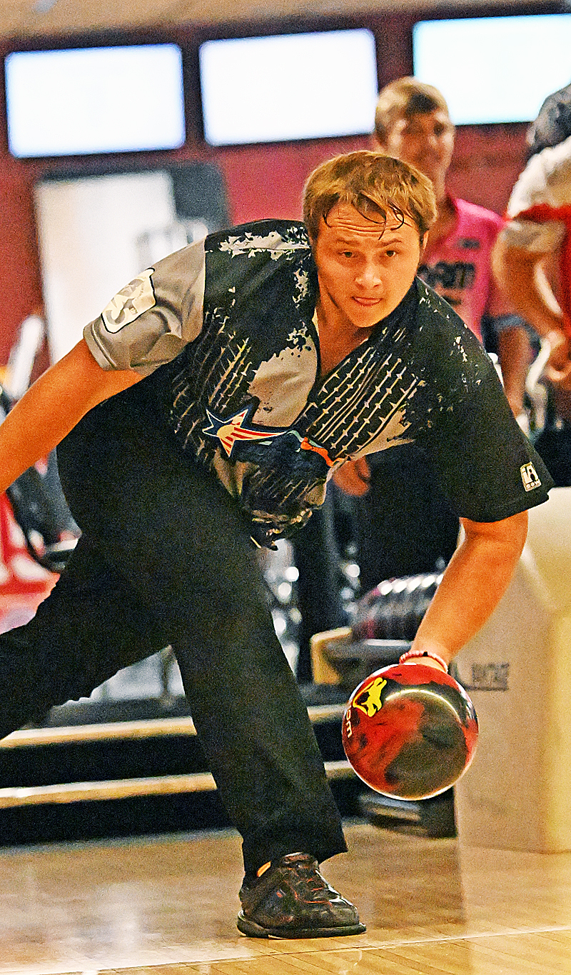 Coldwater graduate Austin Burden makes the most of practime time Friday at Community Lanes, in Minster. (Press Pros Feature Photos)