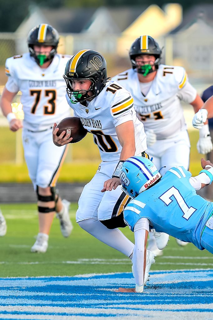 “Our defense kept us in the game, there’s no question about it,” Bears coach Mark Nori said. “We had some fortunate bounces in the second half. Getting an onside kick, the special teams showed up in the second half as well. We do some different stuff on defense, but the kids understand what’s asked them and they’re a resilient bunch. We’ve got some new faces in new places on offense, so to get these guys going and in the flow of varsity football is a great test for us. We have to respond. We have to grow up.”