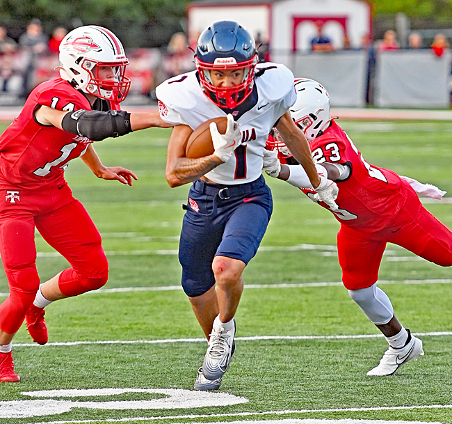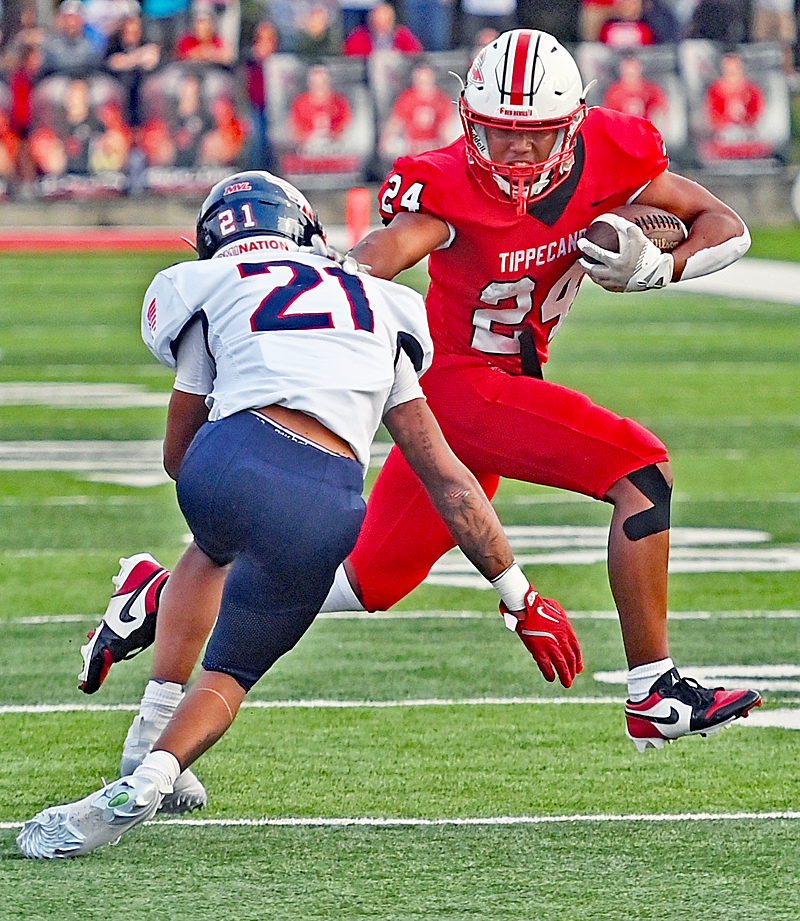 Friday night, Tipp looked poised to take the lead on the second play of the game when Will Strong broke loose on a screen pass for 65 yards, but the pursuit caught him inside the 10 and he lost the ball as he went to the ground. The Indians recovered at their 7, but they quickly had to punt, and Melton capped the ensuing 60-yard drive with a 1-yard touchdown run.