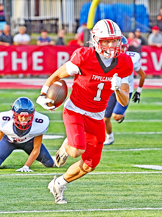 Twice in the third quarter, Max Deckard set up the Tipp offense with strong punt returns, and the Red Devils took advantage both times with touchdown runs of six and four yards from Melton. The second activated the running clock with 2:41 left in the third quarter.