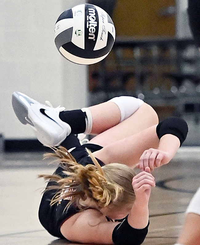 Some grit…New Bremen took a two-set lead by playing defense and refusing to let the ball touch the floor.