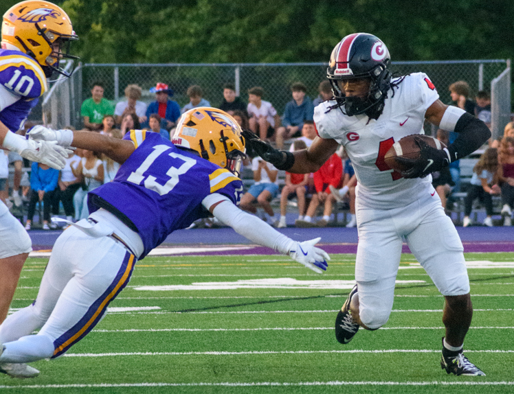 Glenville wide receiver Pauly Sadler finds some running room against Avon’s defense that mostly kept the Tarblooders in check.