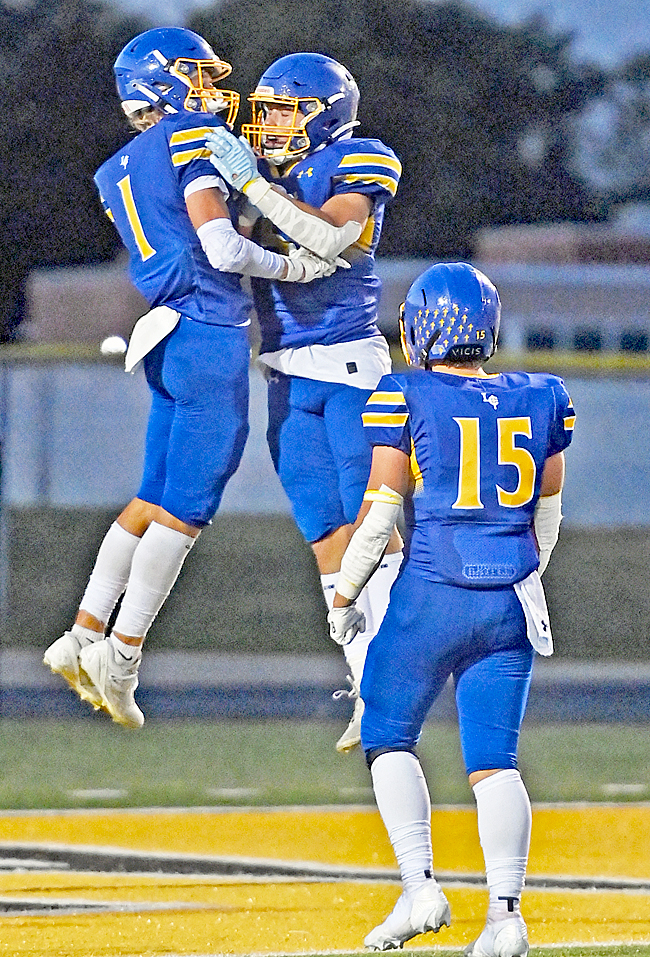 CJ Olding (1) got to celebrate three touchdown receptions from Turner Lachey.