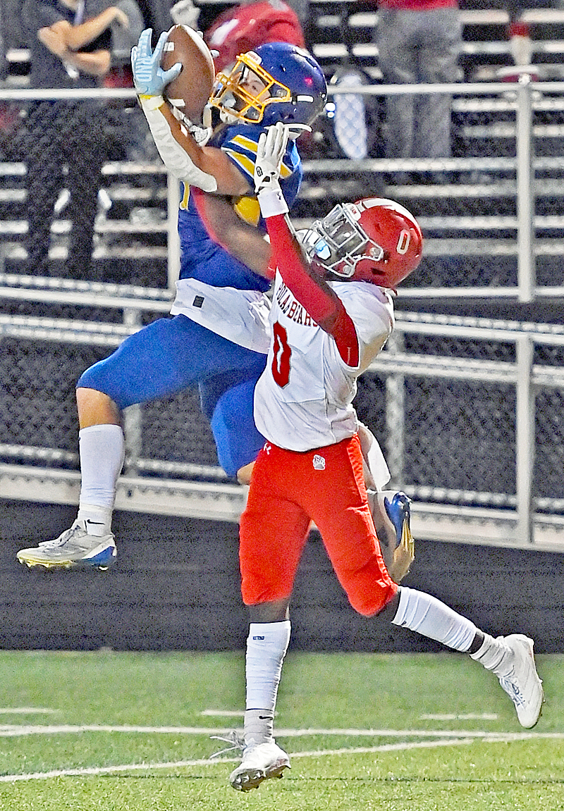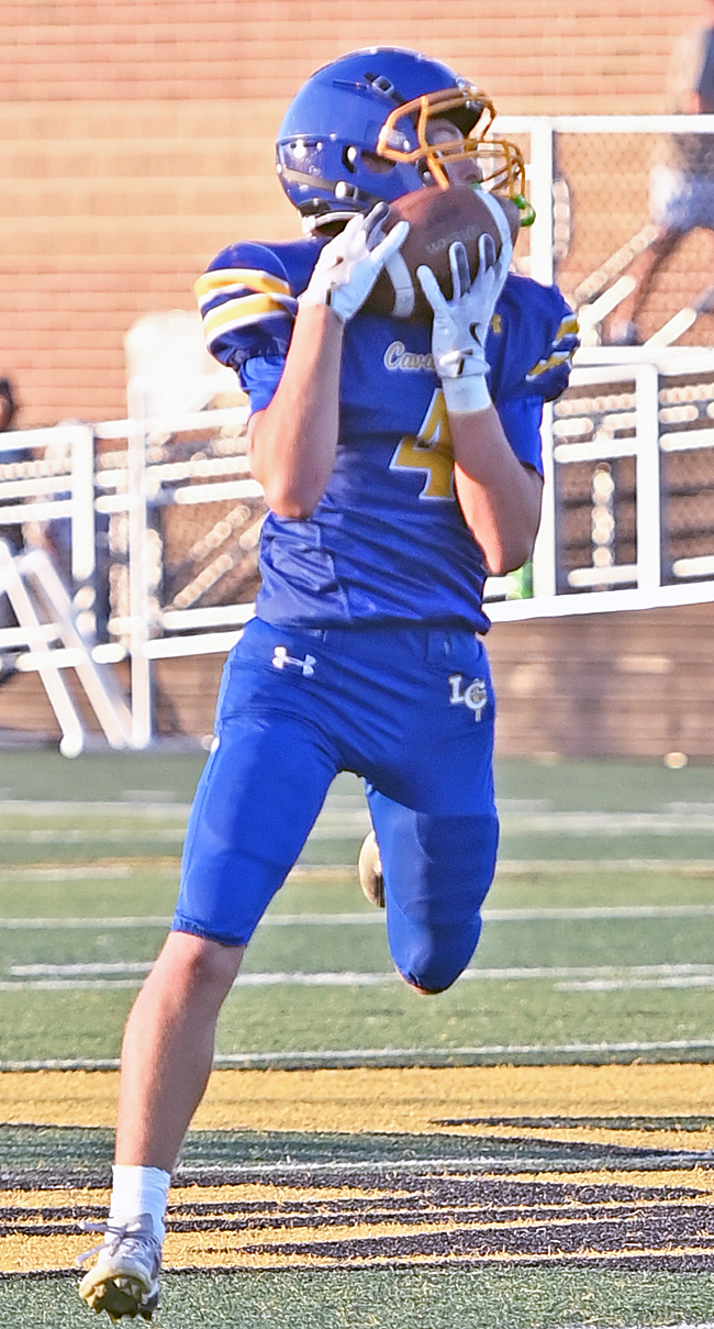 Lehman’s Evan O’Leary comes down with a difficult catch at the 2-yard line to set up the Cavaliers final touchdown late in the game.