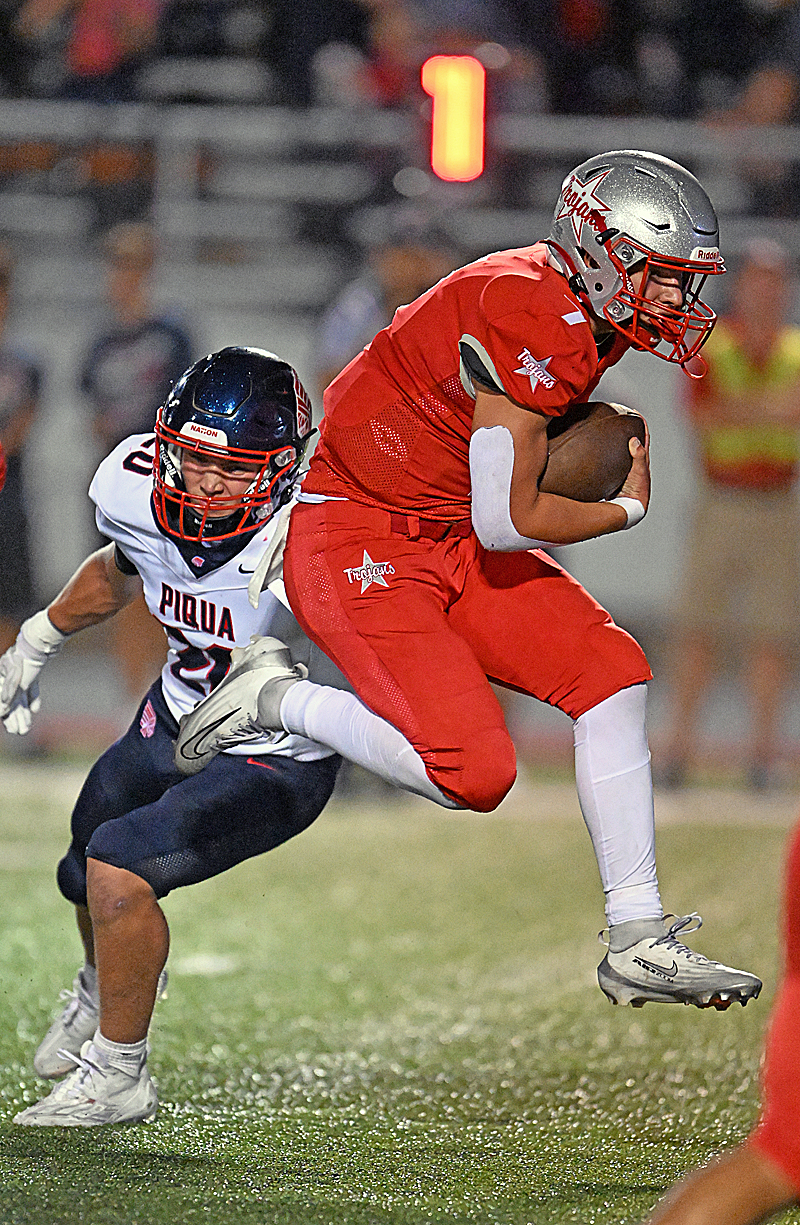 Trojans senior quarterback Aiden Kirkpatrick moved the chains with hard running, precise passing and scored twice. And the Trojans defense kept Piqua from gaining momentum after a first-quarter touchdown and a halftime tie.