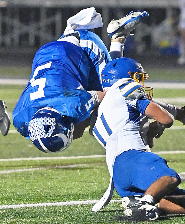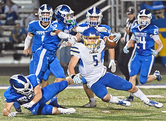 Lachey, who plays safety on defense, clobbered Miami East’s sophomore receiver Landon Francis, who fumbled the ball away for the fourth turnover in the first quarter. But the wild ride was far from over.