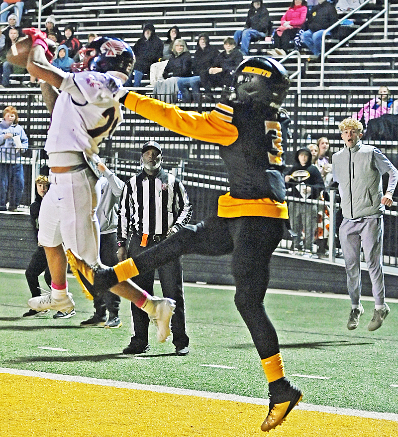 Late fourth quarter interception that kept the Yellow Jackets from scoring and potentially tying the game. Indian Keaton Bolden intercepts in the endzone attempted for Damarcuse Fleming.