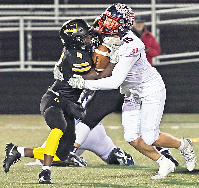 The Indians wasted little time going back on top. Taking advantage of a short kickoff and a good return by one of its upbacks, Piqua went 46 yards in just five plays, finishing the drive with another touchdown pass by Davis. This time, he faked a handoff to Knisley and rolled to his right, where he had Rayshawn Garrett wide open in the flat. The Jackets pursued hard to try to cut him off, but the senior put a spin move on a defender at about the 5-yard line then strolled into the end zone for a 28-yard touchdown.
