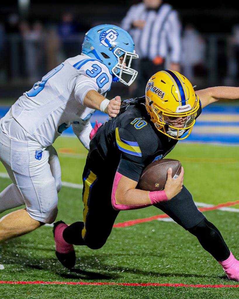 Then on the Braves’ final drive, Chilicki connected with Gebhardt for a 35-yard reception on fourth-and-25 to move to the Berlin 29. Two plays later, Ailes intercepted a pass from Chilicki to seal the win.