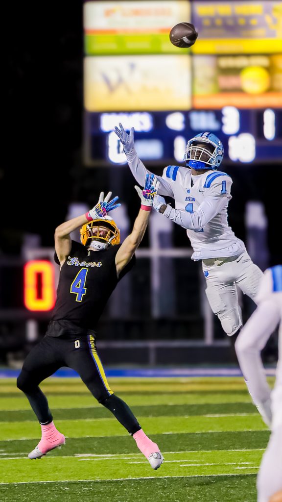 And just like that, Olentangy’s drought against Berlin continues as Cooper Ailes picks off a Luke Chilicki pass intended for Kaden Gebhardt to preserve the win. (Press Pros Feature Photos by Brian Bayless)