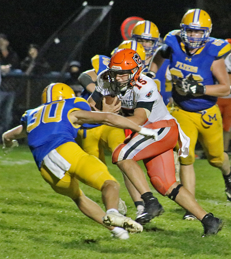 Coldwater quarterback Karsyn Homan accounted for most of his team’s offense against a stingy Marion Local defense.