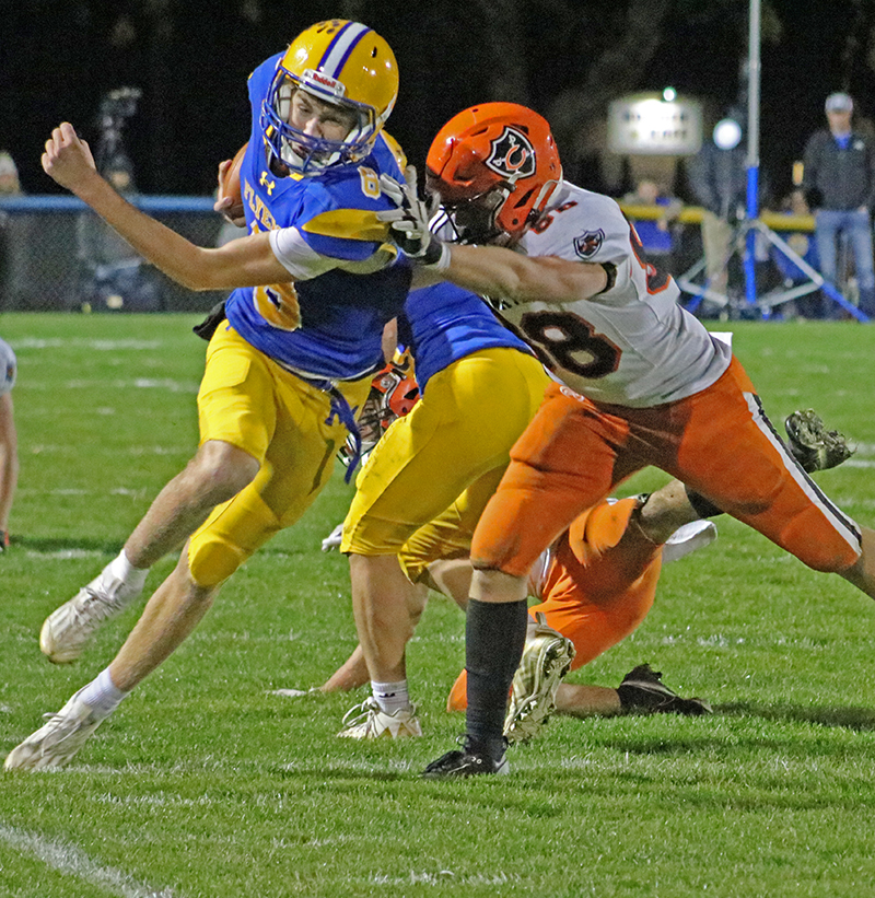 Flyers quarterback Brennen Hess gains key yards on the final drive that ran out the clock on Coldwater.