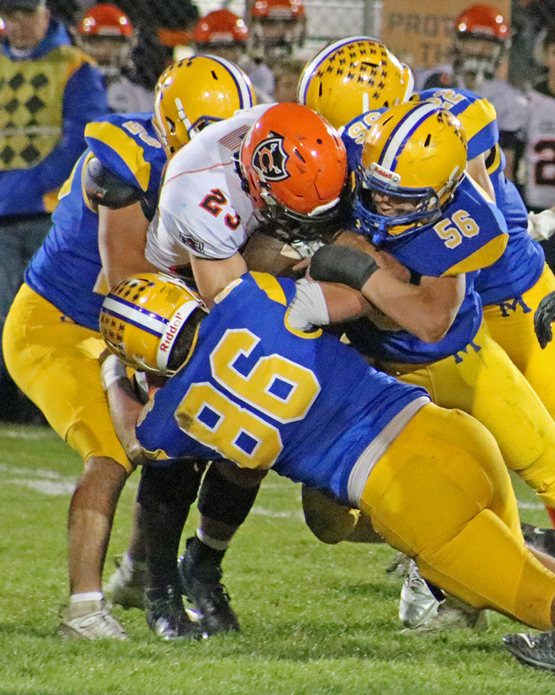 The Marion defense gave little room to Coldwater running back Derek Dues.