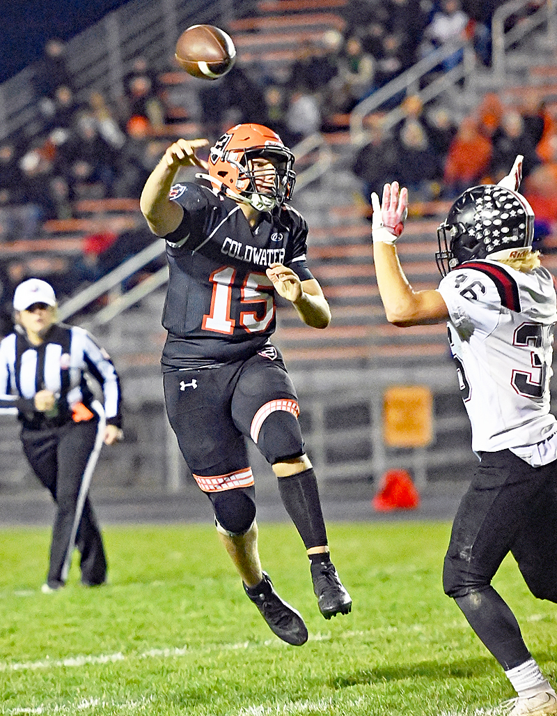 The first half was pretty close to perfect. It proceeded at a quickly predictable cause-and-effect pace to a 34-0 halftime lead. Covington’s offense couldn’t advance much out of its own shadow. Coldwater’s offense couldn’t be stopped.