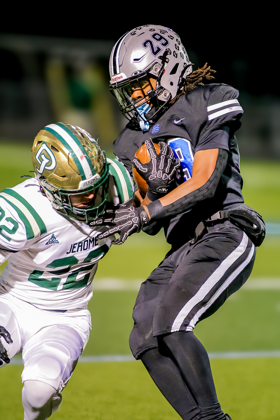 Jerome’s best drive of the game came on its opening possession when it went 66 yards in 18 plays, with senior Joey Slates running in from 1 yard to tie it at 7 with 2:04 left in the first period.