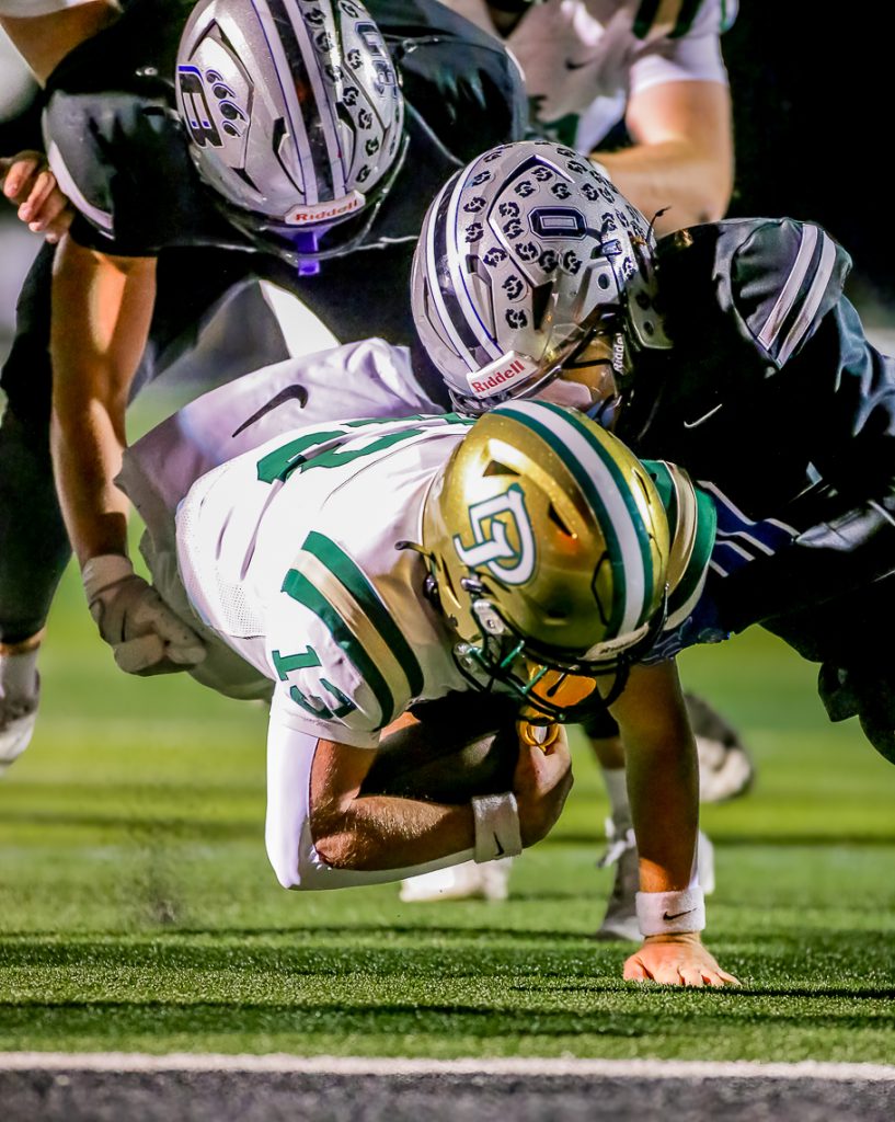 Jerome quarterback Nolan Peoples gets stopped just short of the end zone.