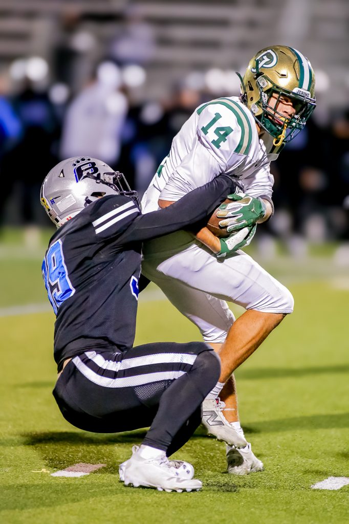 Rashaud Truss fights off Parker Middleton for extra yards during a first-round playoff game. (Press Pros Feature Photos by Logan Gapen)