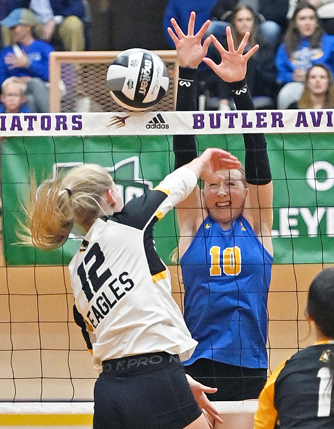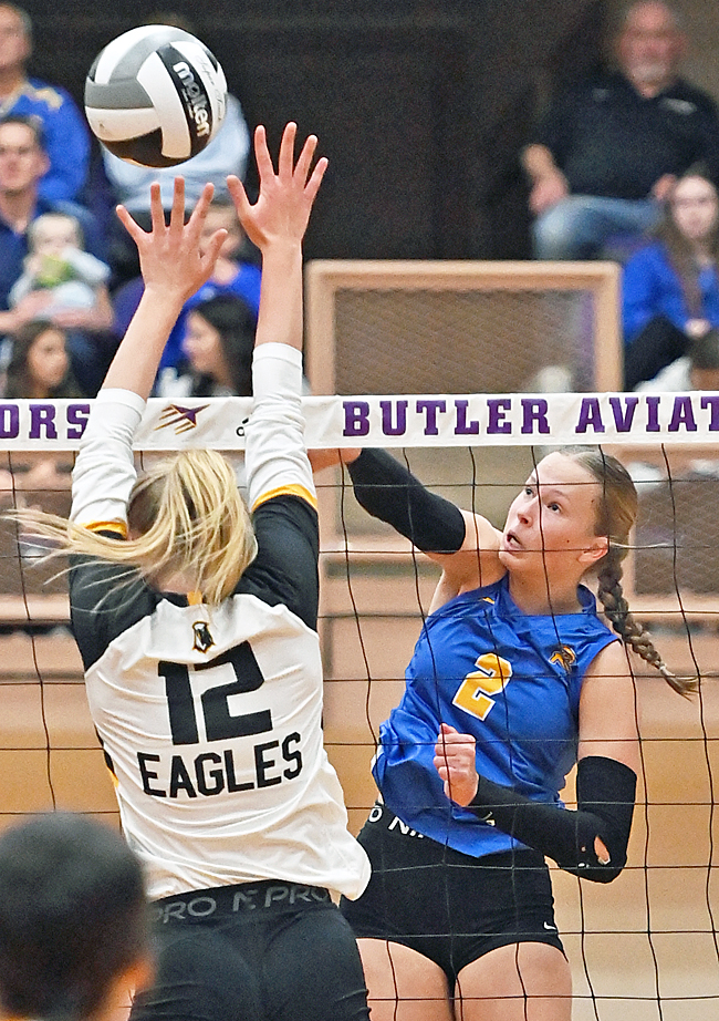 “I said before the match that we had to win the serving, and serve-receive game, and that’s what we won,” Monroeville coach Kendra Snook said. “They won the blocking game. They blocked a lot of balls, but we won the serve and serve-receive game, and that’s where it starts. We were able to go on some big runs. They have the composure back at that line. This isn’t the first big match they’ve played in.”