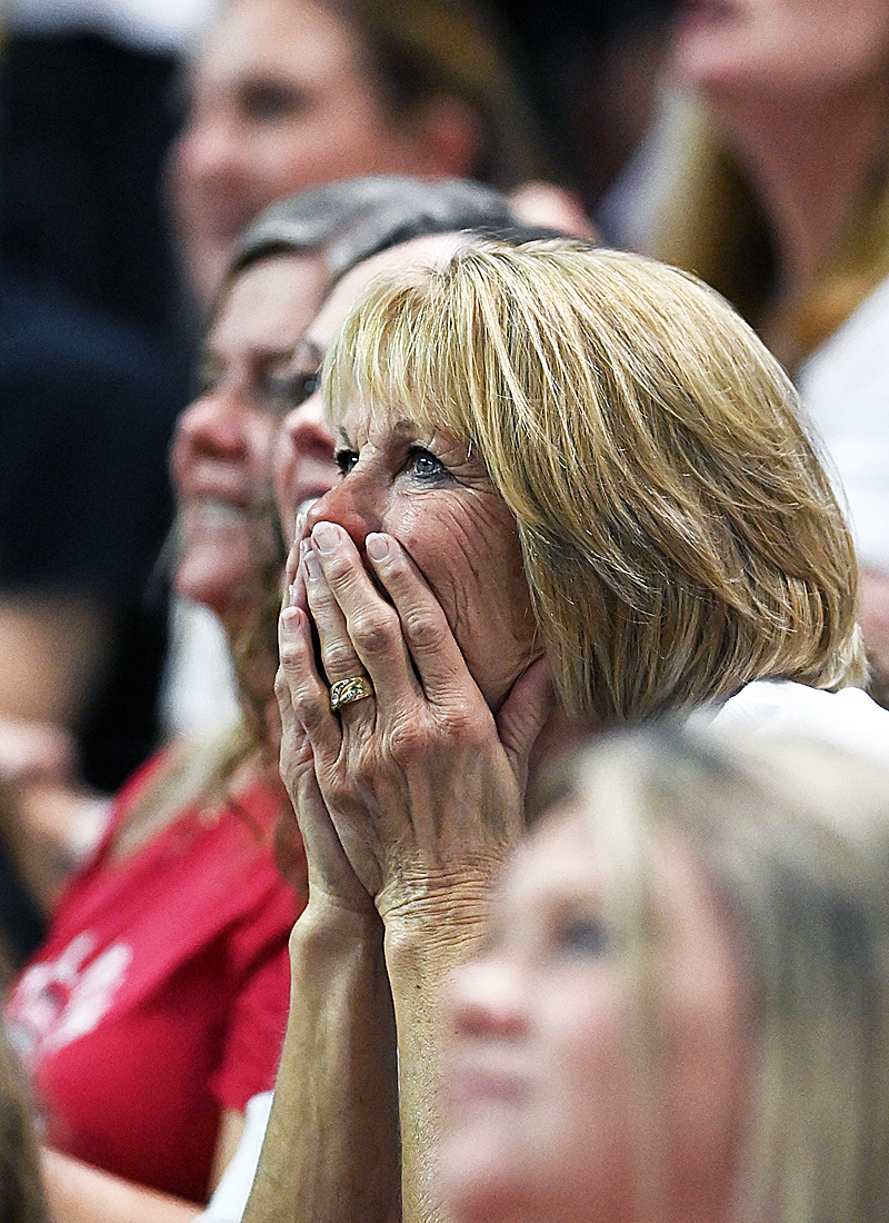 Fans have nerves, too…Redskins fan Denise Boeckman watches nervously during the third set.