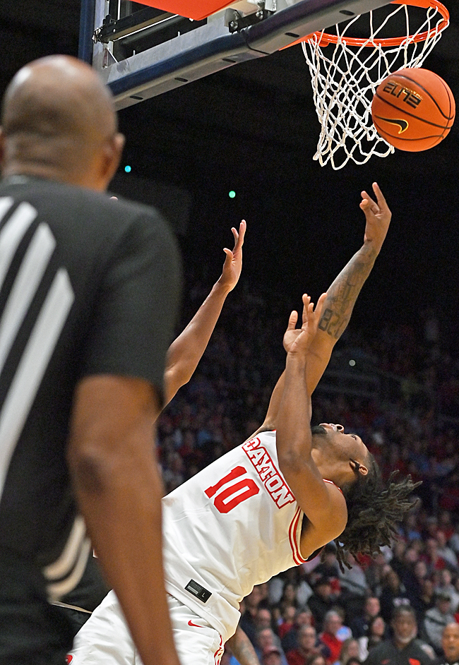 After a fast start and a 12-point first-half lead, Dayton’s Flyers took a breather and permitted UMBC to claw back and take the second-half lead before UD, behind Javon Bennett, barged back to win.