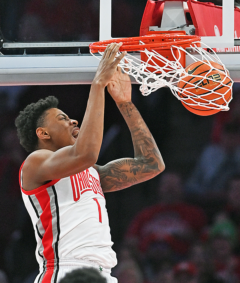 Freshman Amare Bynum contributed this moment of impact in the second half of the Buckeyes’ win Tuesday over Appalacian State. (Press Pros Feature Photos)