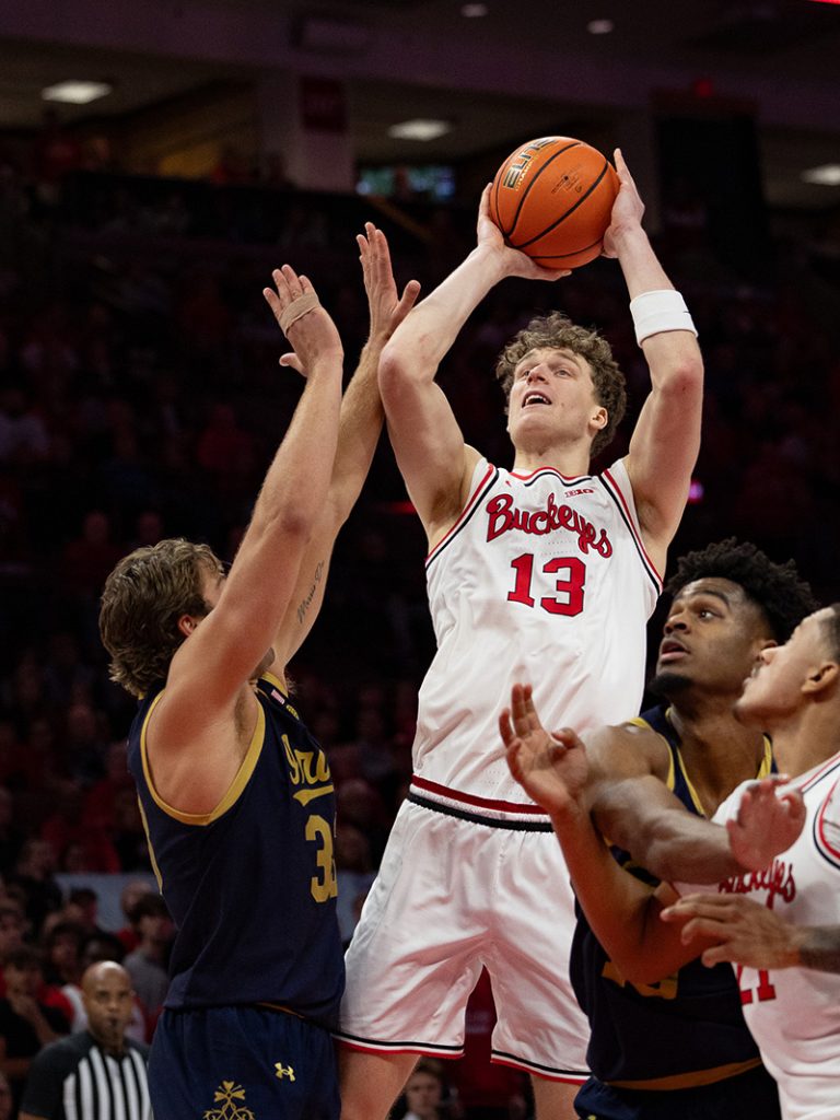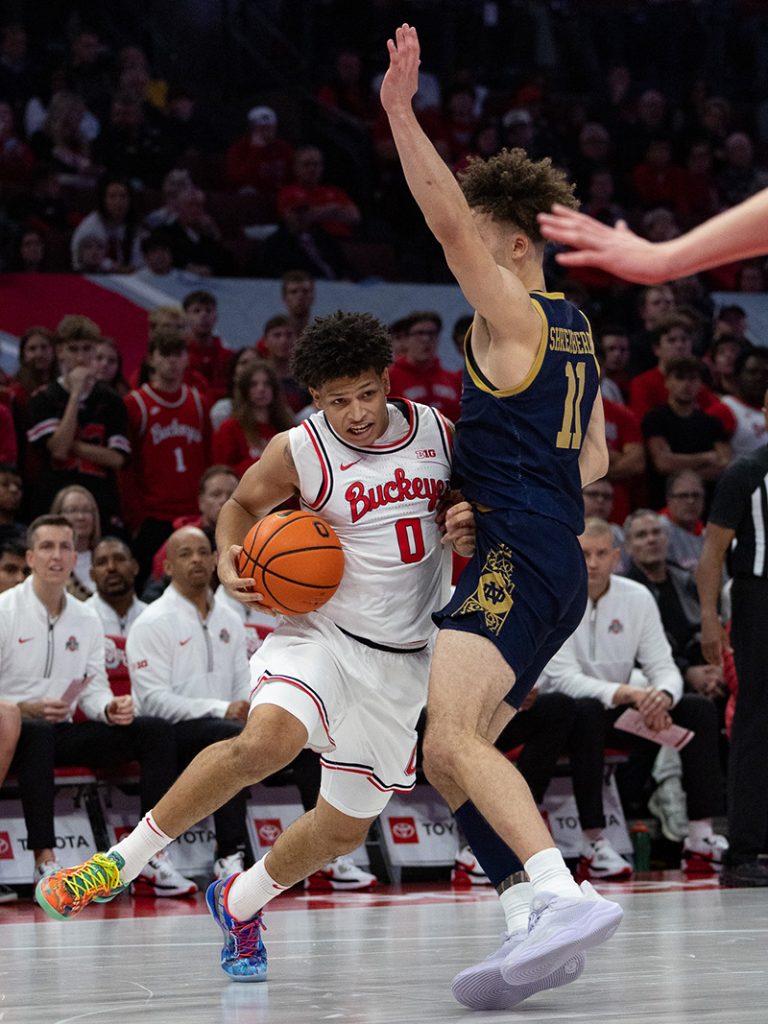 Another difference for the Buckeyes was the grit they must take into Big Ten play. The Irish wanted a physical game. No one on the court was more physical than 6-8, 250-pound Irish forward Carson Towt. He entered the game averaging 13.3 rebounds and got 12. Fortunately for Ohio State, Towt got only two on the offensive end. He scored eight points.