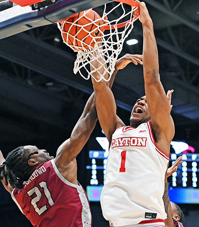 The Flyers romped, as they should, 74-55, and that score is not truly indicative of UD’s dominance. UD was favored by 28 1/2 points. And with 11 minutes left, the Flyers led bv 35, 62-27.