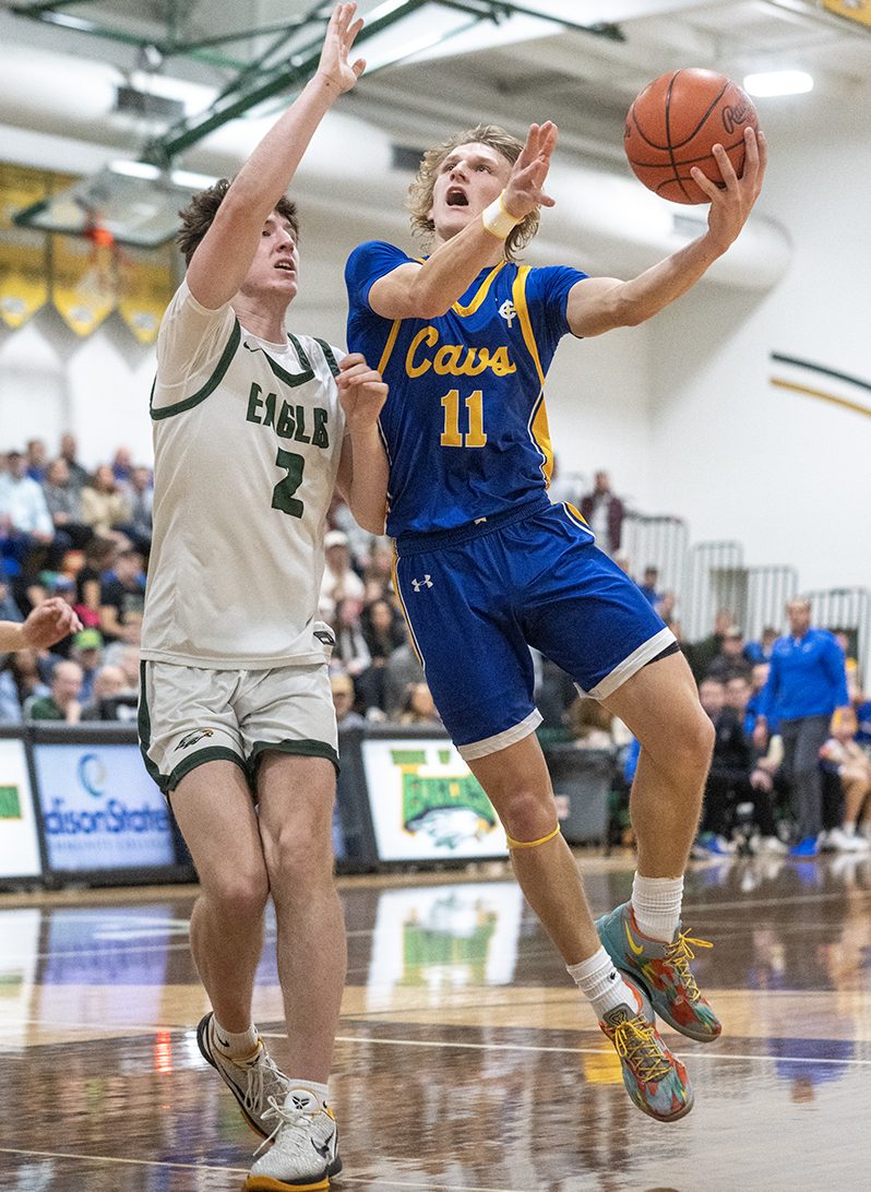 Riston Taylor, the Eagles’ 6-4 senior and leading scorer at 20.4, found a driving lane and thundered a two-handed dunk to cut Lehman’s lead to 45-43 with 3:48 left. Austin Stangel tied the score with free throws with 2:47 left.