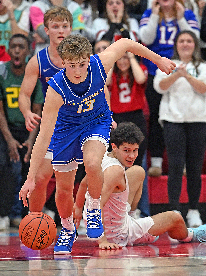 Sunday afternoon at Lima Central Catholic in a near sellout of Monsignor Edward C. Herr Gymnasium, in a traditional and passionate nonconference rivalry, those aforementioned, often-overlooked substances of winning allowed St. John’s to steal a thrilling 66-62 overtime victory from the Division VI Thunderbirds.