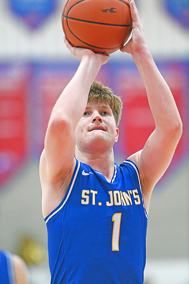 When it was over the St. John’s fans who filled one side of the 2000-seat gym were rewarded for giving up their Sunday. About 100 of them were lined up before the doors opened at noon for the 1 p.m. JV start. They filed in and quickly found the seats they wanted. By game time their blue shirts and sweatshirts had taken over. The 50-50 drawing, with a convenient QR code on the rosters that were handed out at the door, reached more than $12,000.