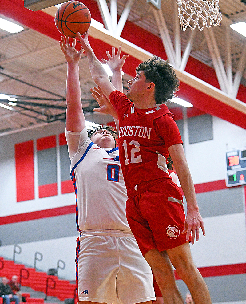 Houston defensive highlight…the Wildcats’ Luke Crim gets all ball on the shot attempt of Tri-Village’s Dominic Black.