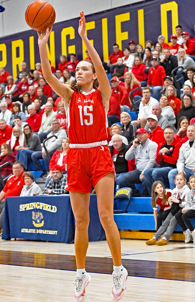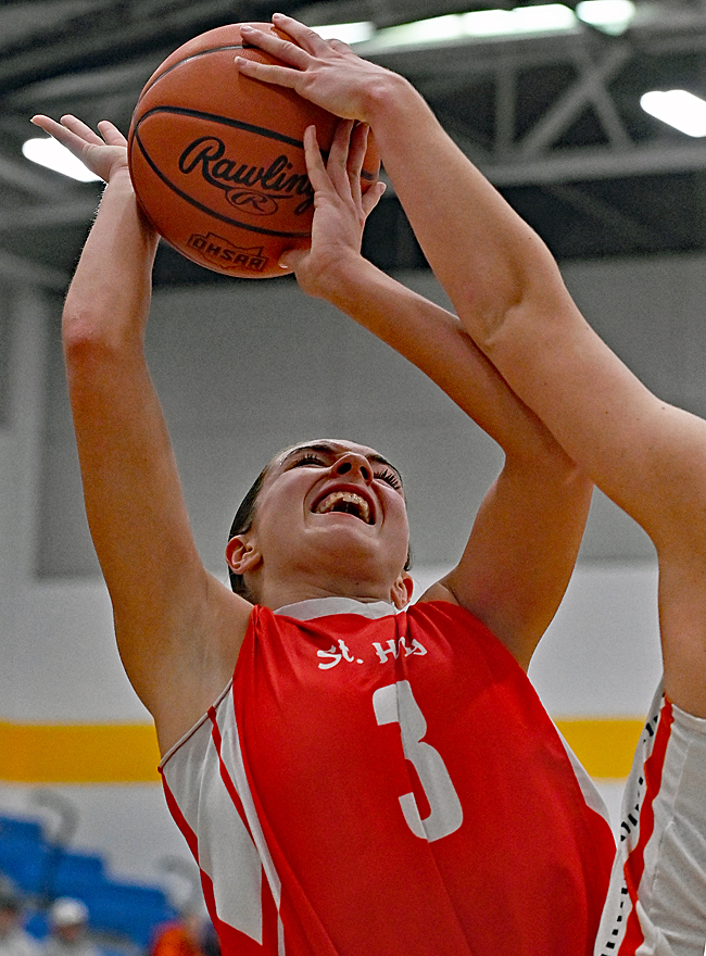 The crafty Albers backed her way to the basket and banked in a shot to make it 31-23 St. Henry with 4:20 to go.