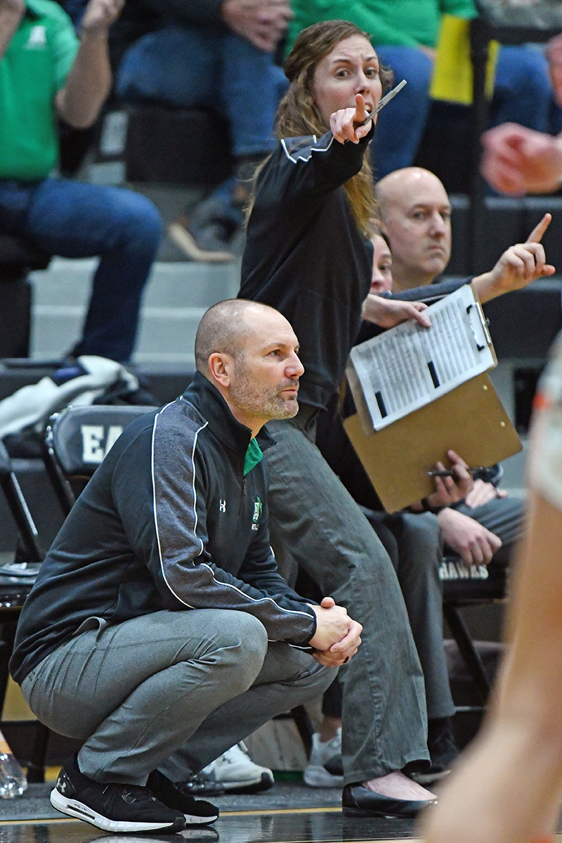 The second quarter dragged. Mumaw’s second foul with 7:25 left benched her for the rest of the half. With the score tied at 13, Litten’s second foul with 5:58 left did the same. With neither team’s playmaker on the floor, search and rescue teams were dispatched in search of the missing offenses.