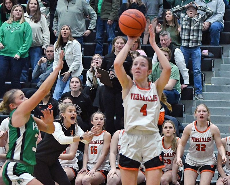 Versailles had it going in the first quarter when Litten scored seven straight points for an 11-7 lead. But Anna showed a sign of things to come with late-quarter action. Adelynn McVety’s 3-pointer with 40 seconds left and Makenzie Mumaw’s 3-pointer with 11 seconds left blasted the Rockets to a 13-11 lead, sparking a 5-for-11 three-point day for the Rockets.