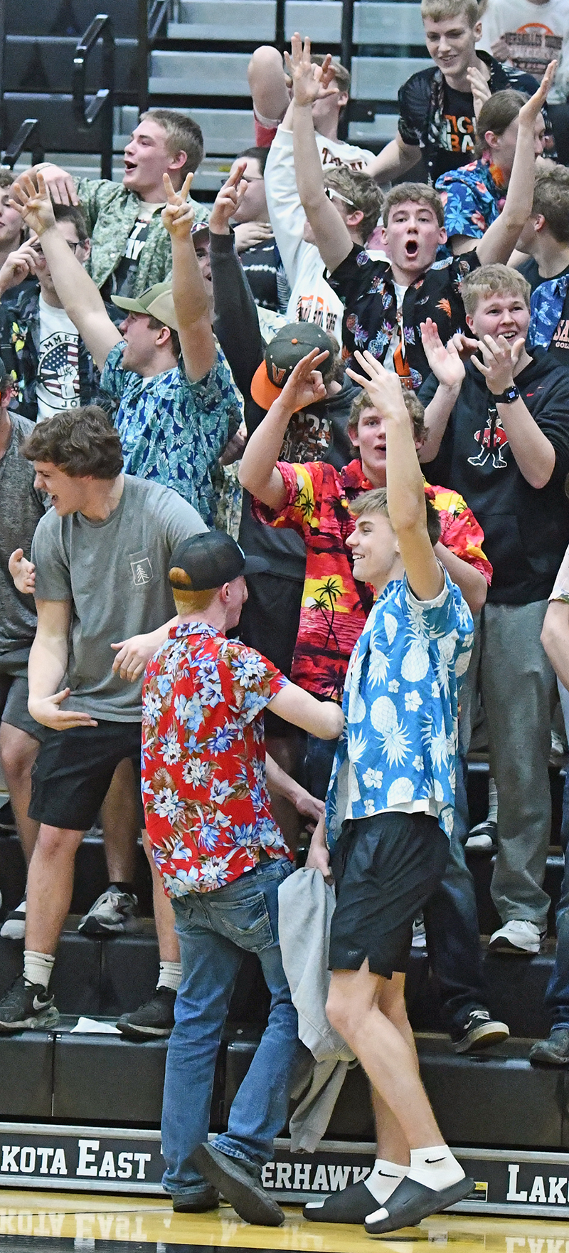 Versailles students, including some boys basketball players, celebrated Kynnedi Hager’s 3-pointer that forced overtime.