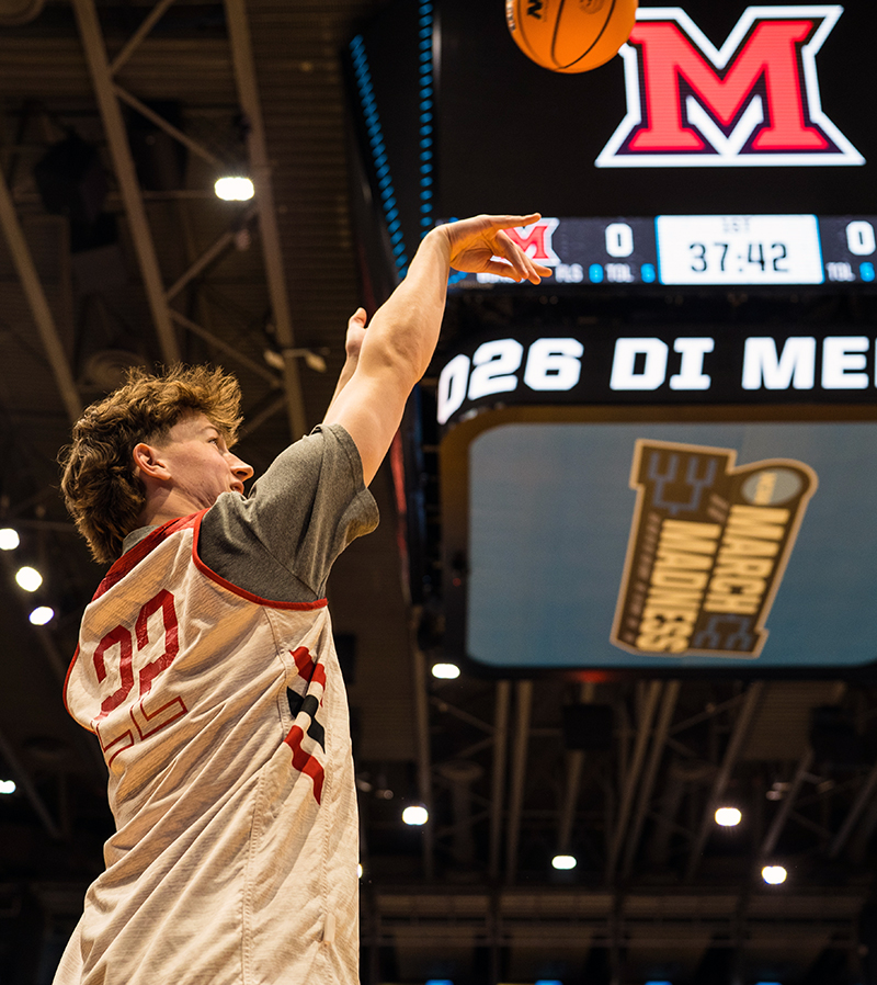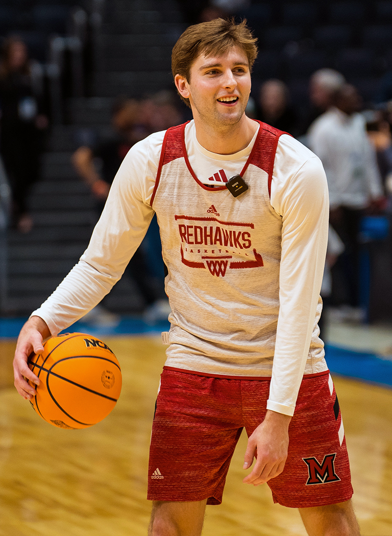 Miami’s Eian Elmer knows how to have fun at UD Arena. He won a state title here in 2022 with Cincinnati Taft. (Photos Courtesy Miami University Athletics)