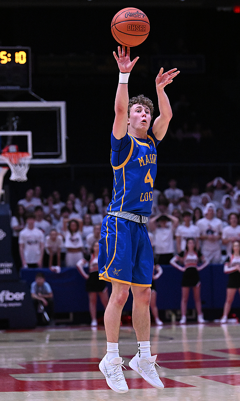 Isaac Moeller banked in this 3-pointer from the top of the circle to give Marion Local hope of a win in regulation.