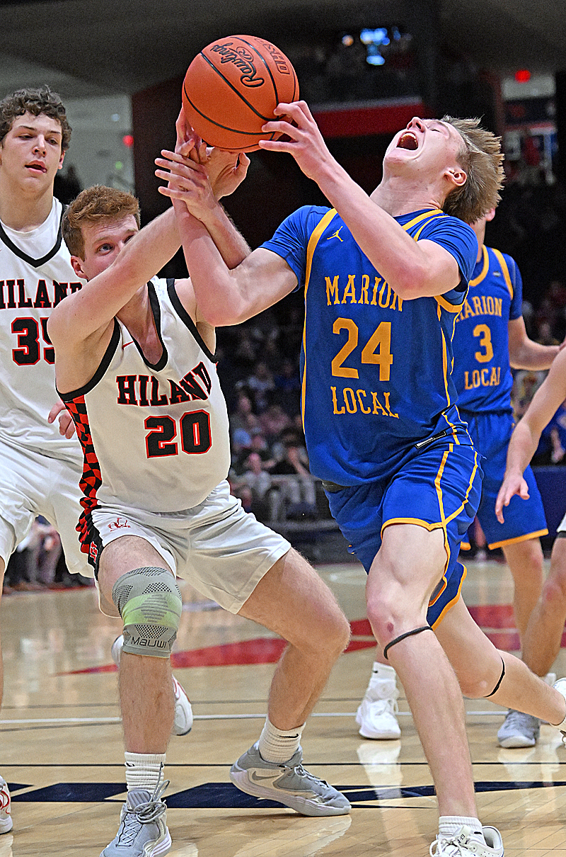 Hiland (25-3) had its fourth state title in seven appearances and first since 2012. Marion (26-1) finished runner-up for the third time and is 3-3 in state finals. Both played difficult schedules, and after seeing their semifinal games, this one was as close and as physical as expected.