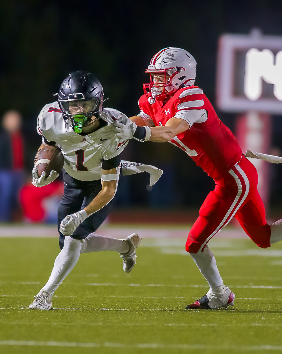 Kyler Russell goes hands on against Alder running back Cashton Wheeler. The Red Raider defense notched a fourth straight shutout.