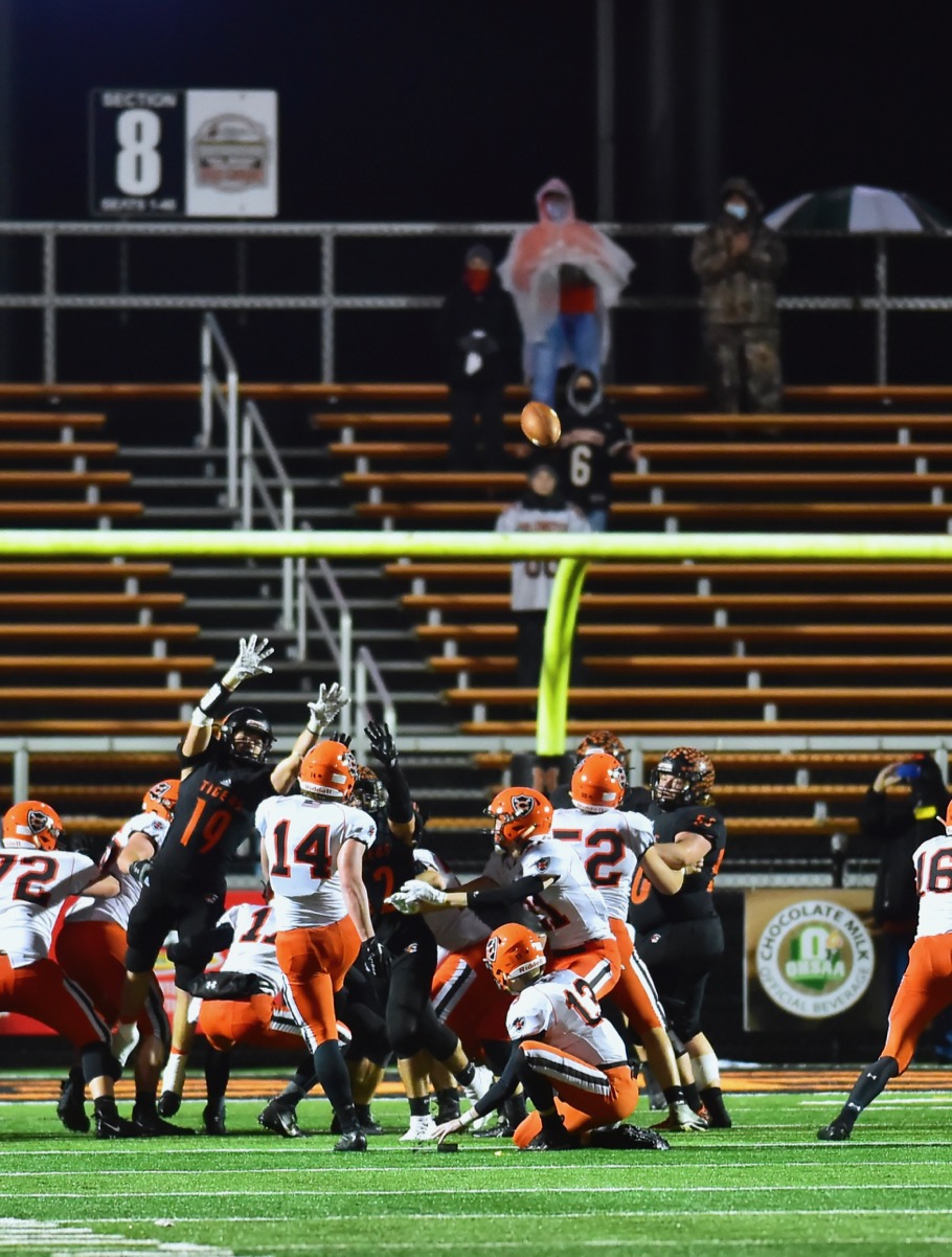 In the middle, and in the books...Brady Klingshirn's 26-yard field goal split the uprights with no time remaining to give Coldwater a 38-35 win over New Middletown Springfield in the Division VI title game - the Cavaliers' seventh title in school history. Bruce Hooley writes the game for today's Press Pros.