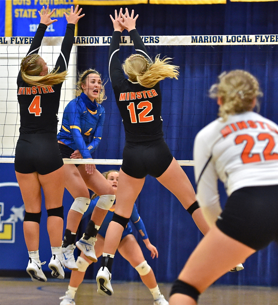 The Marion Local Flyers were looking to snap a two-match losing streak ... albeit to a pair of state-ranked teams. They did it in decisive fashion with a 3-0 win over Minster to stay in the Midwest Athletic Conference title hunt on Thursday. Kinsey Thobe hammers one down for the three set win over the Minster Wildcats.