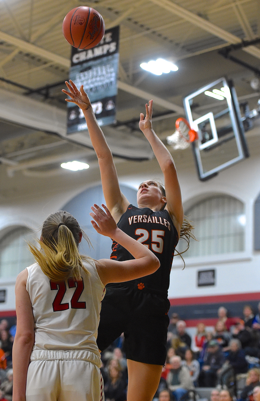 Versailles struggled early to find its shot. But once the Tigers did ... there was no stopping them as Tracy White's team cruised to a seventh straight district final appearance with a 62-39 win over Middletown Madison. Lindsey Winner (pictured) dominated inside with 16 points despite missing much of the first quarter in foul trouble. More from Greg Billing Monday Night.