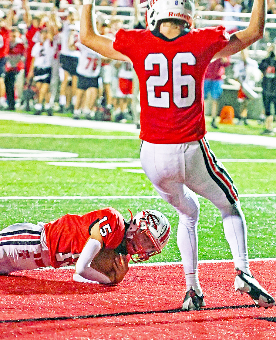 Quarterback Bradyn Fleharty and receiver Ethen Tibbitts were a two-man wrecking crew as Hilliard Bradley jumped to an early lead and hung on to edge Upper Arlington 24-22 in an OCC Central Division showdown.