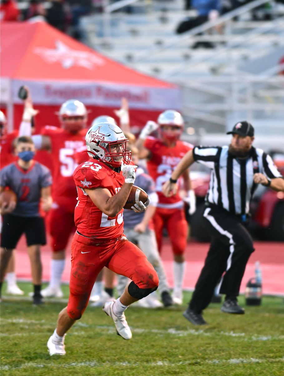 Troy's ground game (386 rushing yards, six touchdowns), and Nick Kawecki (below) ran Columbus Franklin Heights out of Friday's playoff matchup at Memorial Stadium. Andy Anders writes for today's Press Pros.