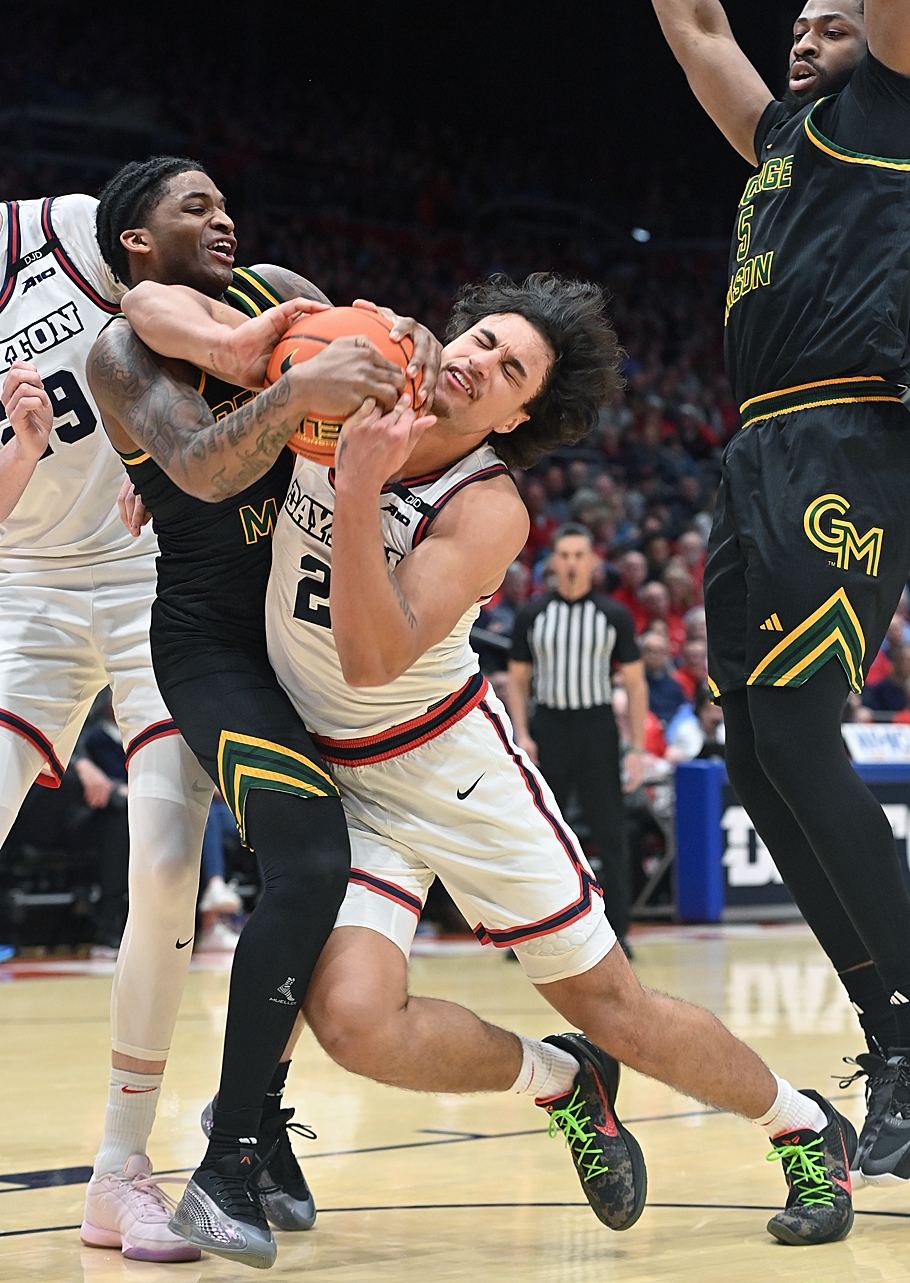 For the third straight game, the heavily-favored University of Dayton basketball team tripped over the half-court line and tripped over the foul line and lost another Atlantic-10 Conference game, dropping the Flyers to 1-3 in league play and the loss to George Mason ended UD's 26-game winning streak in UD Arena.